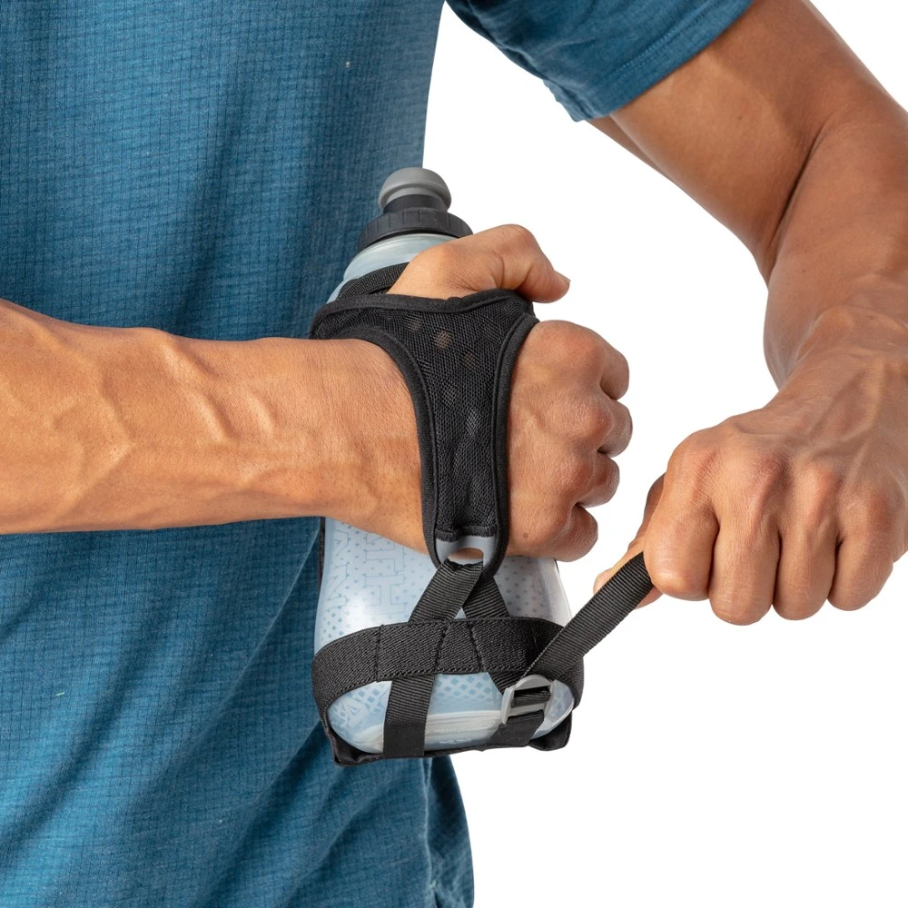 - Fully adjustable hand strap with thumbhole keeps flask in place without having to grip it; wicking mesh material dries quickly