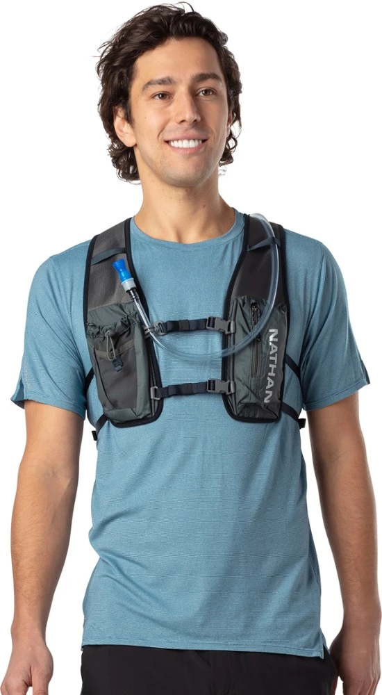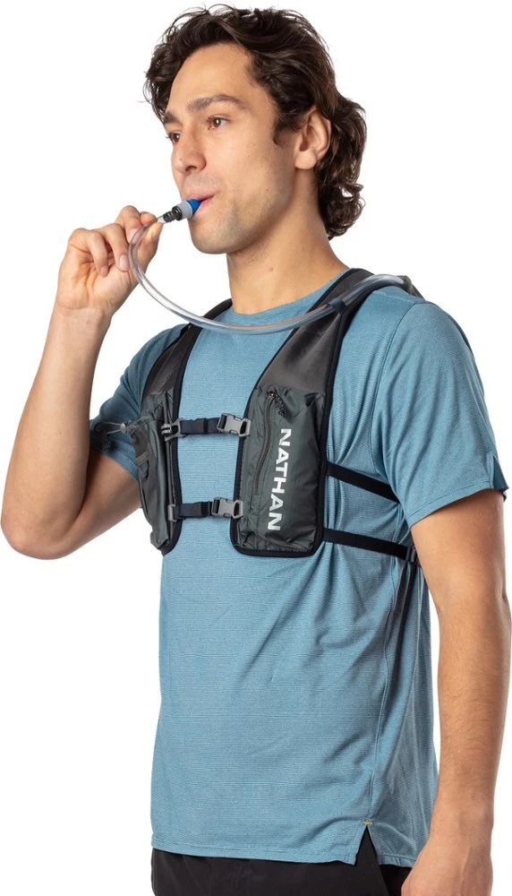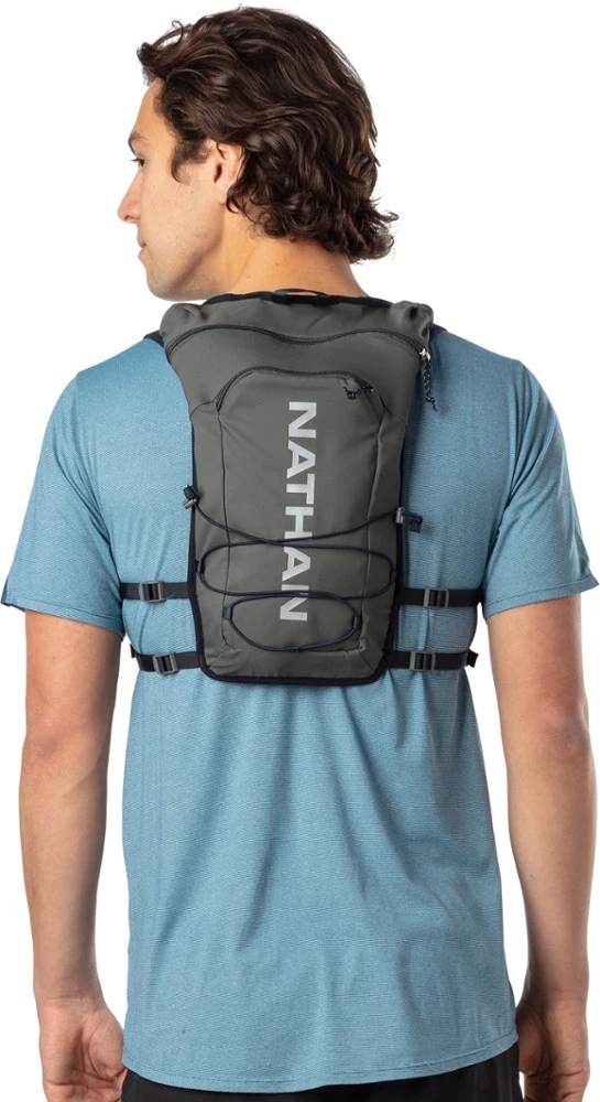 Carry the essentials for blissful days spent running on singletrack with the Nathan Quickstart 2.0 6 L hydration pack. It comes with a 1.5-liter reservoir and offers a comfortable, bounce-free fit.