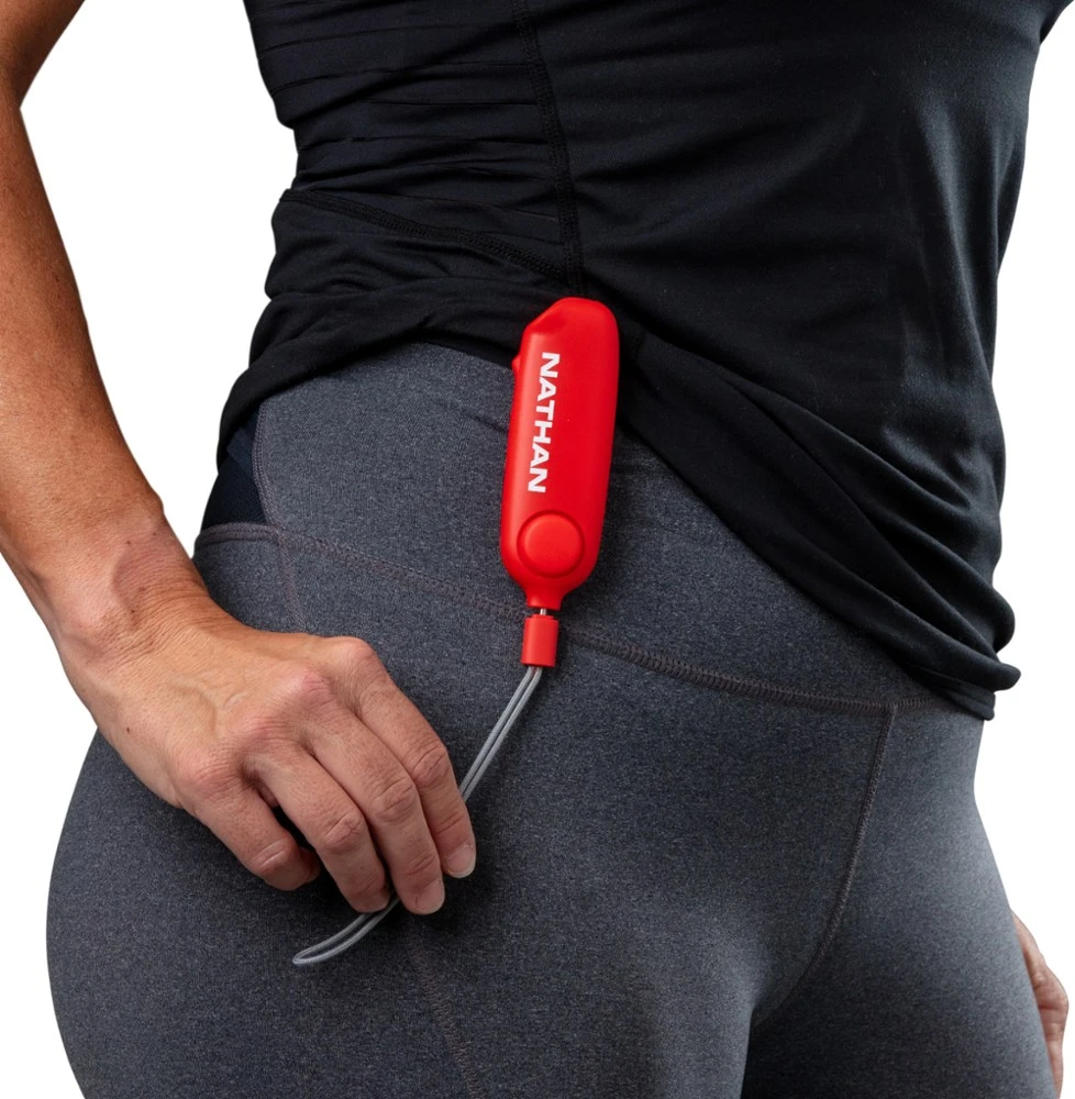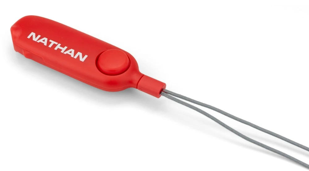 Simply pull a tab on the Nathan SaferRun Ripcord Siren personal alarm and strobe light and it blasts a 120dB alarm—as loud as an ambulance. The strobe also makes you visible to others nearby.