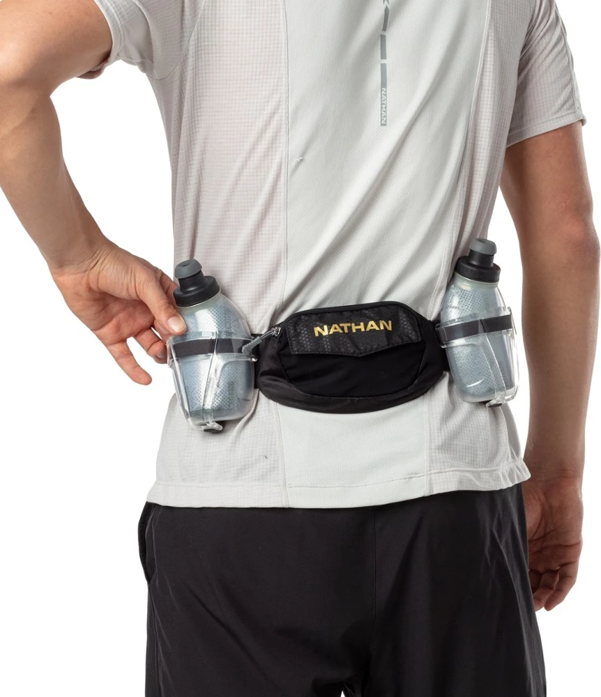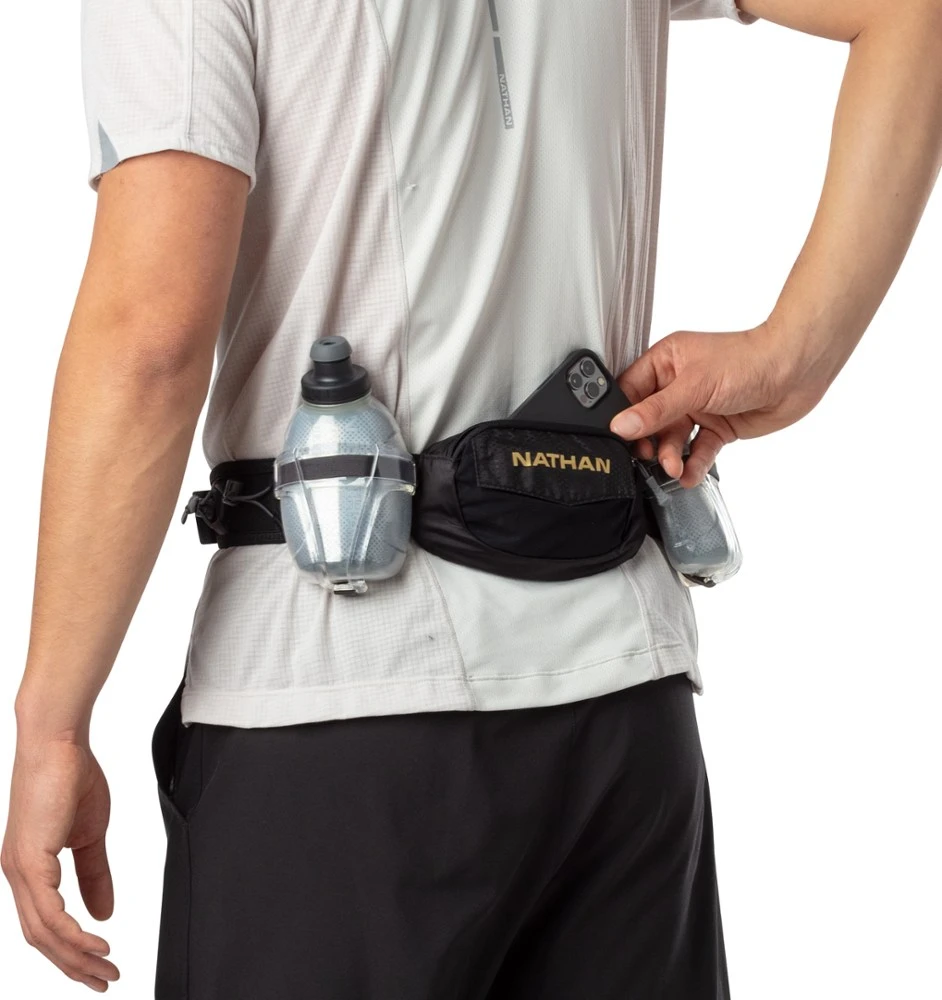 Keep hydration within easy reach while you crank out your miles. The Nathan Trail Mix Plus Insulated waist pack comes with 2 handheld flasks, roomy storage pockets and a fit that moves with you.