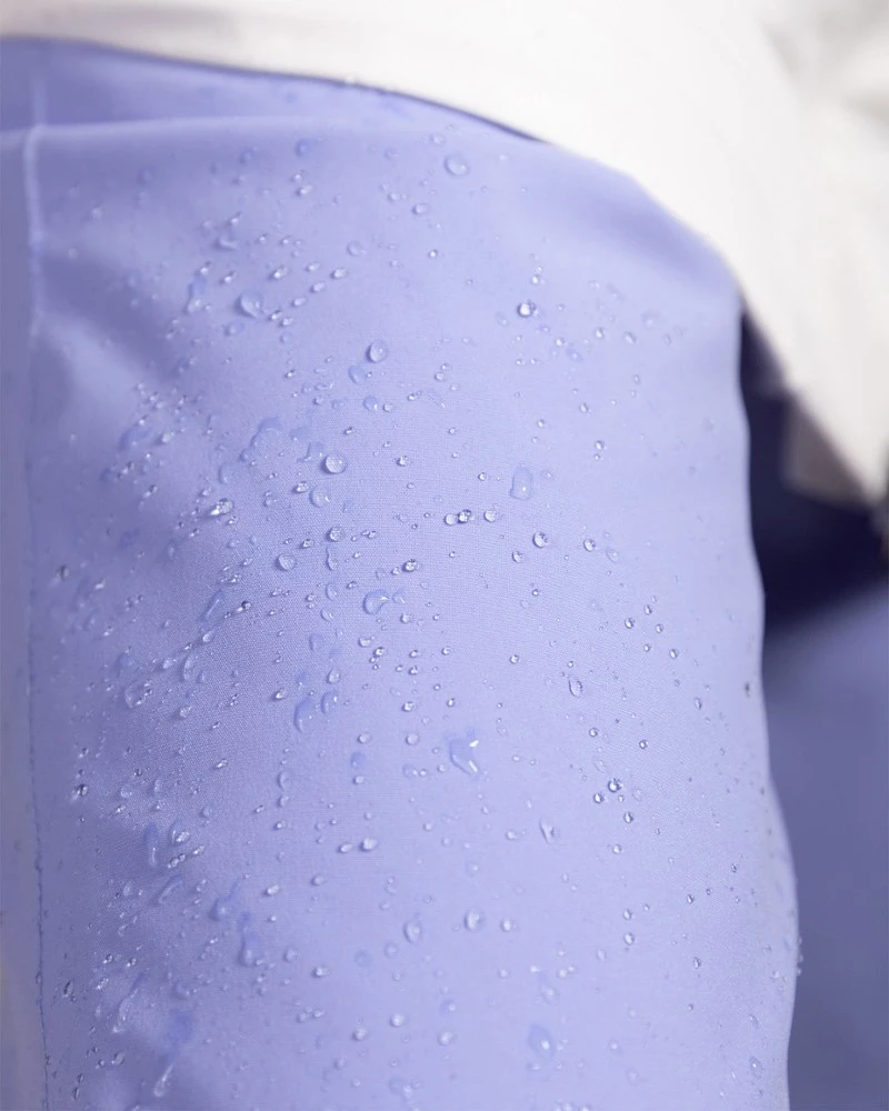 - Polyester fabric has mechanical stretch and a PFC-free durable water repellent (DWR) treatment that helps moisture bead up on the surface