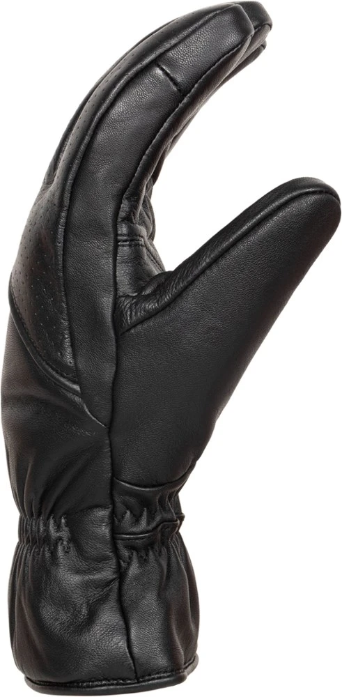 - Elastic cuffs cinch the wrists; an elastic leash keeps the gloves secure