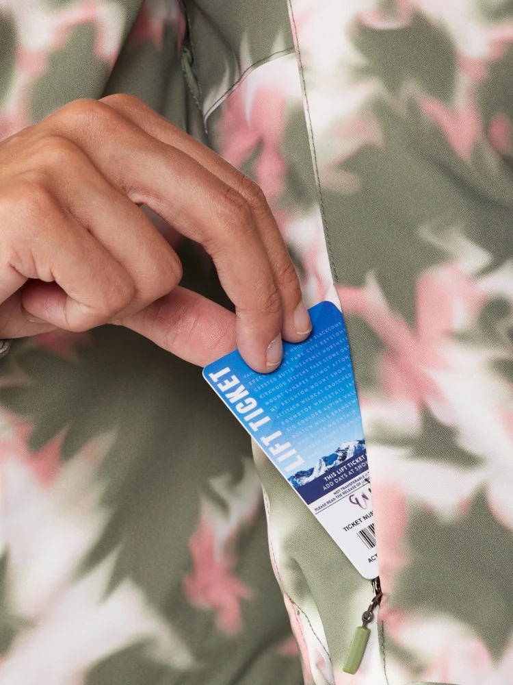- Hand pockets; sleeve pass pocket; internal media and goggles pockets; key clip