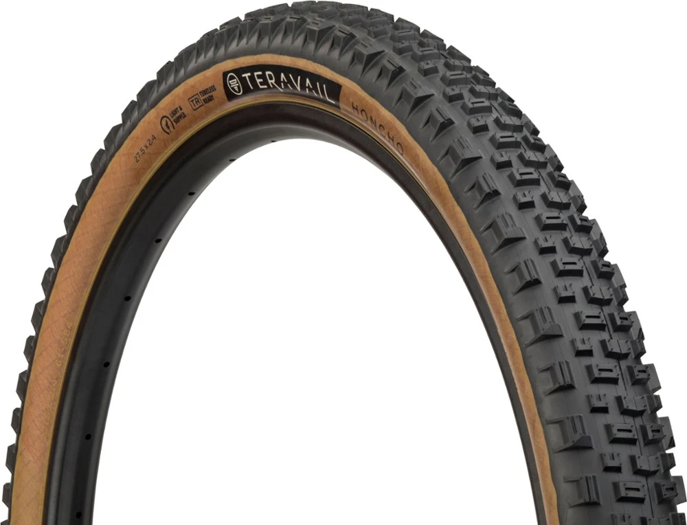 A high-performance tire made for trail bikes, the Teravail Honcho Durable tire features tall, aggressive and angular lugs that provide ample traction on loose and uneven terrain.