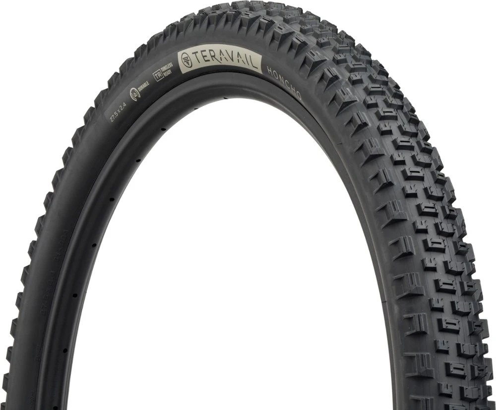 A high-performance tire for rocky, rooty trails and uneven, loose terrain, the Teravail Honcho Light & Supple tire boasts tall, aggressive and angular lugs for plenty of traction.