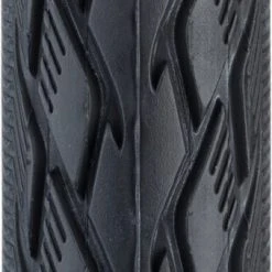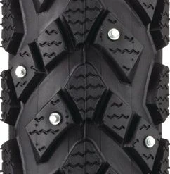 - Center lugs are tall, angular and ramped in the front to keep rolling resistance low; a flat side on the back boosts braking traction